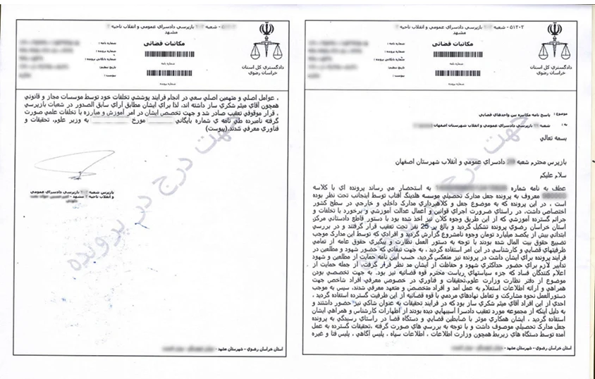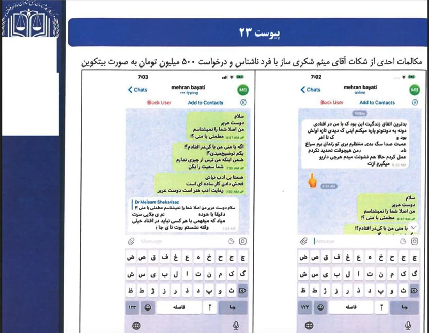 - مطابق مستندات فوق آقای ماکان آریاپارسا (میثم شکریساز) در این پرونده به عنوان مطلع (شاهد) دعوت شده است و جهت رسیدگی به این موضوعات با سیستم قضایی همکاری داشته است. («مطلع» در ادبیات قضایی به معنای «شاهد» است.)