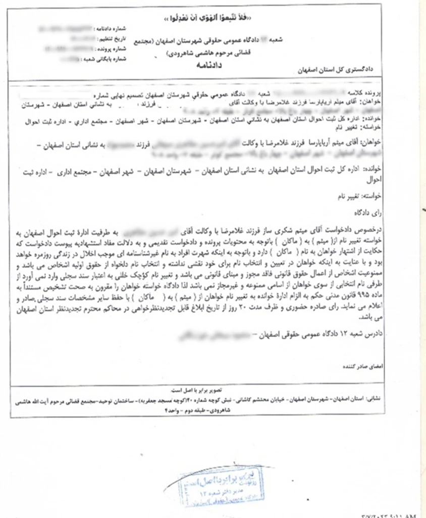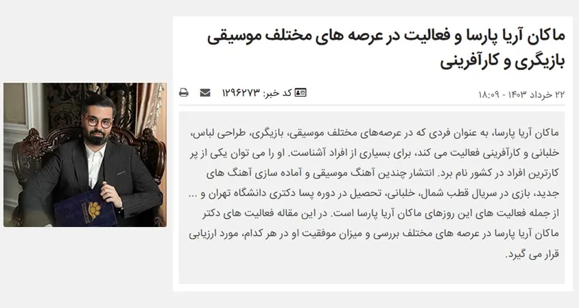 دلایل تغییر نام آقای ماکان آریا پارسا